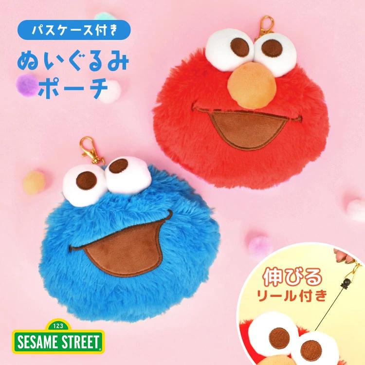 【ぬいぐるみパスケース付きポーチ】セサミストリートから人気キャラクターの「エルモ」と「クッキーモンスター」のふんわり柔らか素材のぬいぐるみパスケース!定期やICカードはもちろん、ファスナーポケットも付いているのでちょっとした小物も収納できます♪最長約50cm伸び縮みするリール付きなので、改札のタッチもスムーズ!カバンやリュックにつけても存在感しっかり!かわいいぬいぐるみパスケースです。