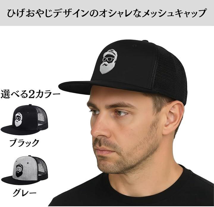 「オシャレなひげおやじの刺繍ロゴキャップ」ひげおやじが刺繍されたオシャレなメッシュキャップ。