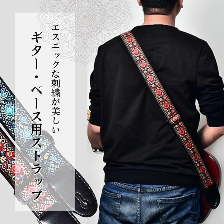 エスニックな刺繍を施した、ギター/ベース用のストラップです。