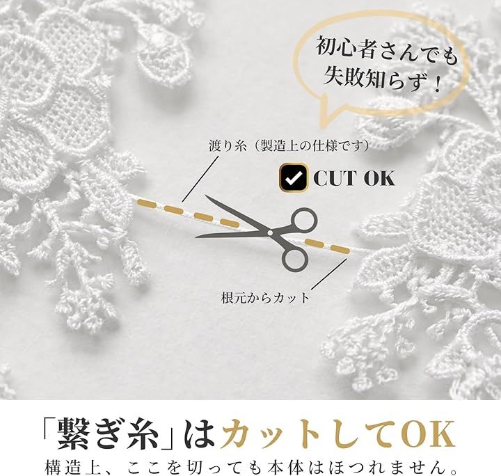 余った部分はカットして、ドールの衣装やグローブの装飾など、小さなグッズ制作にも無駄なくご活用いただけます。