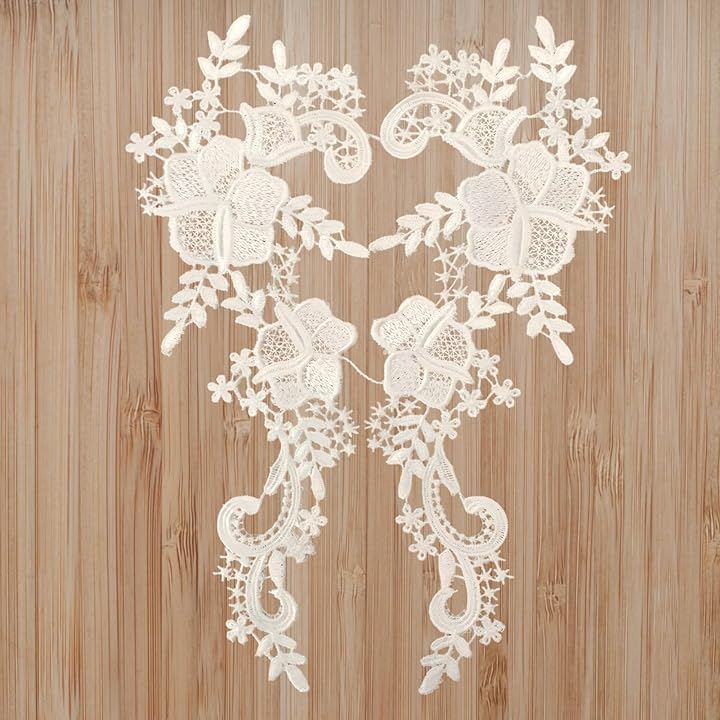 Embroidered lace collar, floral pattern applique, sew-on, handmade parts, craft decoration, patch, detachable collar, dress, costume, remake, DIY, left and right set.