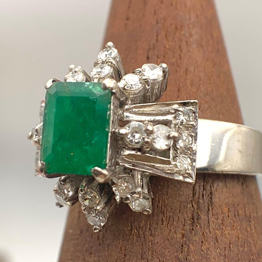 ◯アイテム 23558008871エメラルド/ダイヤ シルバーリング 11号レディース 指輪 4.6g