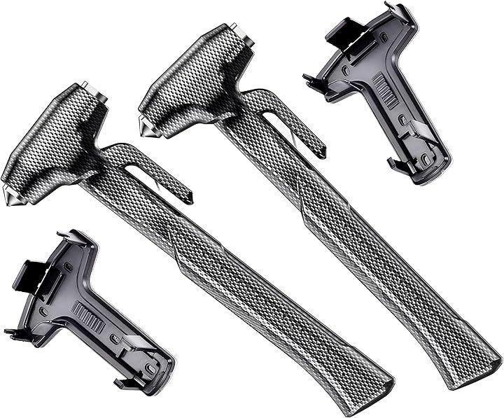 「3つのカラーから選べる。」 レッド、ブラック、カーボン柄をご用意、お好みのカラーをお選びいただけます、自動車だけでなく、バスやタクシーなど業務用としてもお勧めです 「セット内容」 脱出用ハンマーx2、専用ホルダーx2 「サイズ」 約23cmx7.8cmx2.5cm 「カラー」 レッド、ブラック、カーボン柄(カーボン製では有りません)