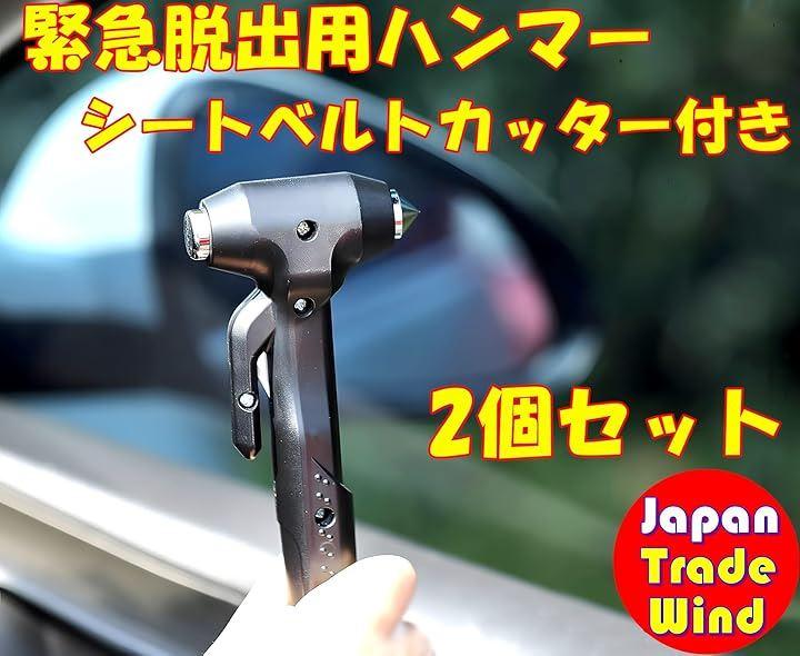 「緊急時の命綱。高品質脱出ハンマー2個セット」 万が一の災害や事故に備え、高品質な脱出ハンマーを2個セットでご用意、鋭利な窓割り用ハンマーとシートベルトカッター、そして実用的な金づちの3つの機能を備え、あらゆる緊急事態に対応します