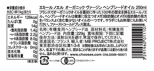 商品紹介 ヘンプシードオイルはオメガ3脂肪酸とガンマ(γ)リノレン酸を含む数少ないオイルの一つです。必須脂肪酸オメガ3とオメガ6が含まれており健康に役立ちます。ファーストコールドプレス製法。1920年にエミール ノエル氏によって設立されたエミール ノエル社はフランスの南部プロヴァンス地方とセヴェンヌ地方の間にあるオリーブの産地として有名なPont St Espritに位置しています。エミール ノエル社のオイルは、その質の高さで知られており、1972年にフランス国内においてオーガニック植物の種を搾って作るオイルの最初の生産社の一つになりました。エミール ノエル社は低温一番搾り製法のオーガニックオイルでフランスのマーケットを席捲しています。原料として最適な品質をもつ有機植物の種や果実は、世界中の有機農家から調達されています。エミール ノエル社は、特色があり至極の味と高い栄養価をもつさまざまな製品をお客様に提供できることを誇りに思っています。また、その製法は完全に自動化されていますが、化学処理は一切しておりませんので、原料が持つ本来の味や香り、栄養価をそのまま提供することができます。 原材料・成分 有機食用ヘンプシード油 ご注意(免責)>必ずお読みください 直射日光をさけ、常温で保管して下さい。 続きを見る