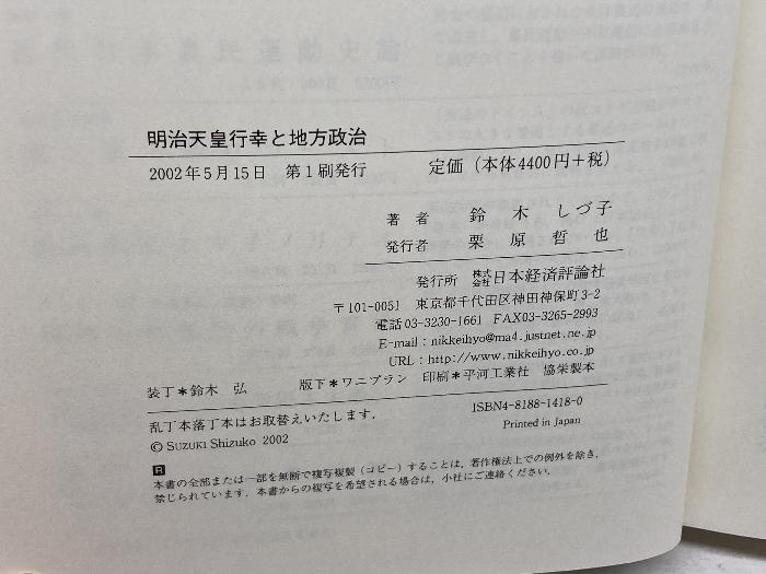 商品名:明治天皇行幸と地方政治 日本経済評論社 鈴木 しづ子