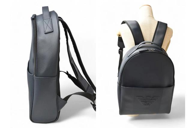 エンポリオアルマーニより、メンズ向けバッグパック/リュックサックです。シンプルなネイビーカラー。カジュアルなスタイルからビジネスシーンまで合わせやすいデザイン。A4サイズ/ノートPCも収納が可能です。大容量で、通勤通学、ジムバッグにも使えます。