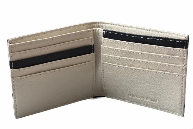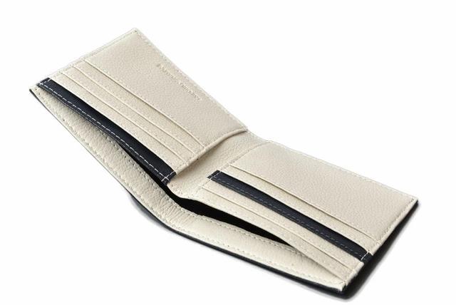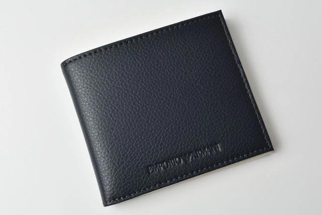 エンポリオアルマーニより、折財布です。コンパクトながら高機能を備え、カード収納8枚・札入れと収納力もあります。コインケースと別々に持つ方にもおすすめ!スマートなフォルムで、スーツの内ポケットやボトムスの後ろポケットにも、収納しやすいです。