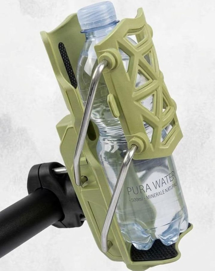 *ペットボトルや水筒にフィットする、金具が自動で閉まるボトルホルダー