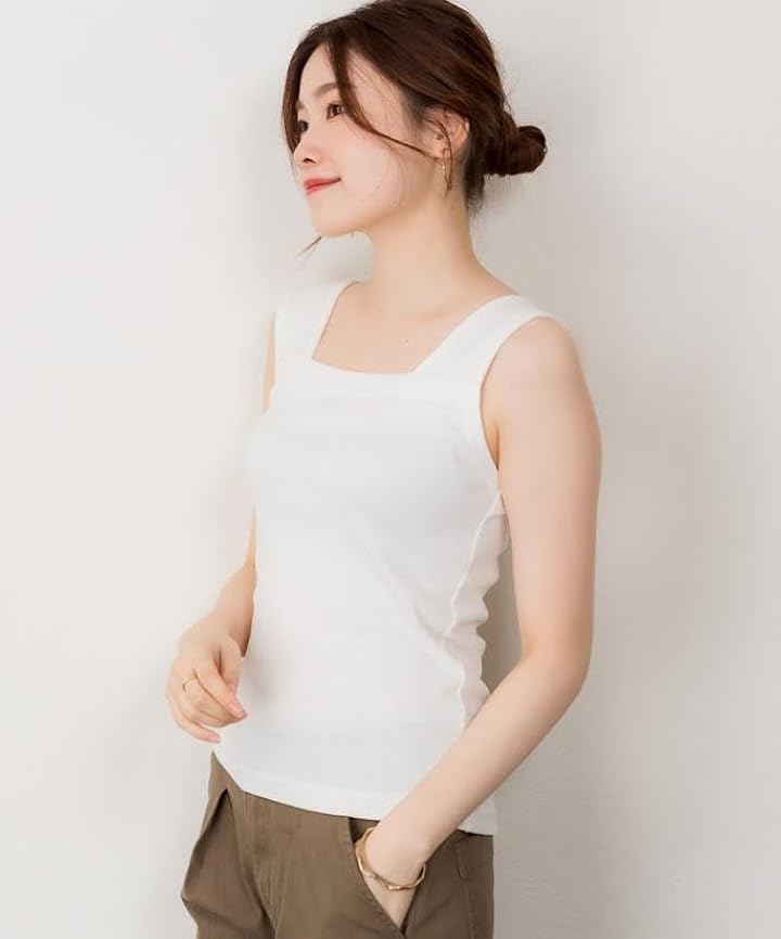 デニムやスカートのウエスト位置に干渉しない、スタイリングの幅を広げるタンクトップ