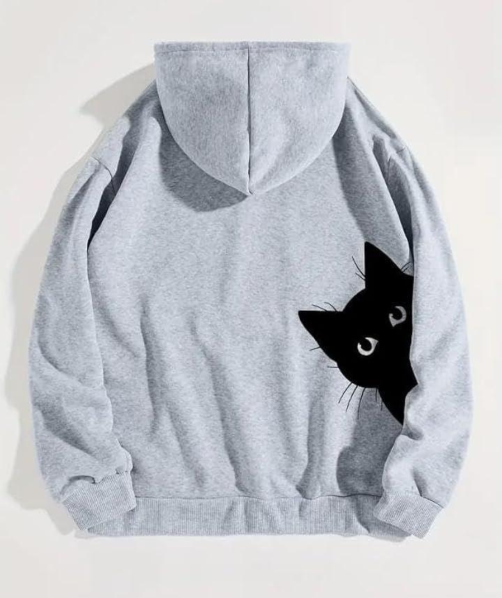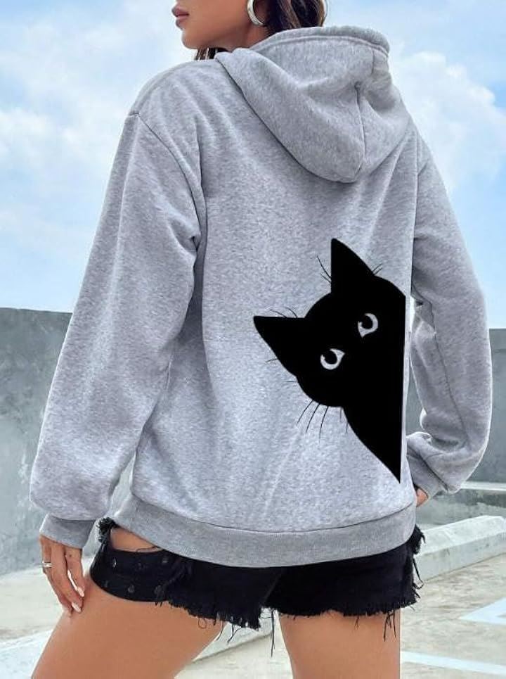 ドロップショルダーのシルエットでトレンドのシルエットが作れるネコ柄パーカーです。