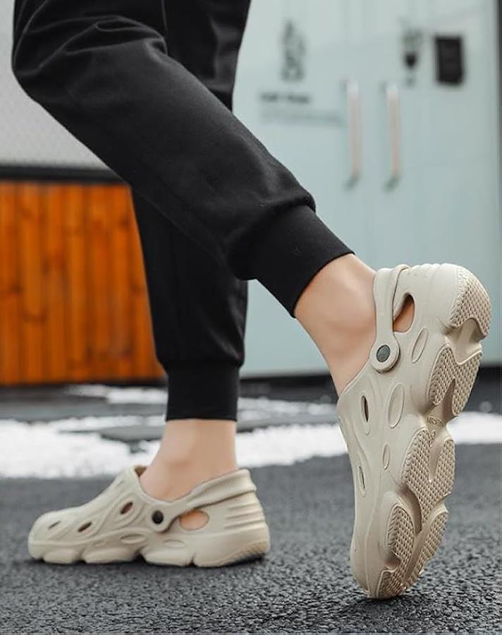 ストラップを後ろに動かせばピッタリと足にフィットするスタイル、前に動かせばクロッグサンダルとして履くことが可能。