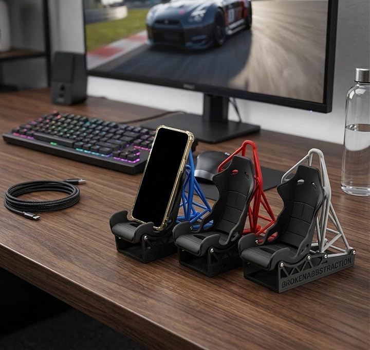 *レーシングカーのバケットシートを再現したリアルなデザインのスマホスタンド