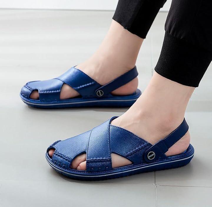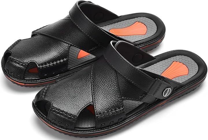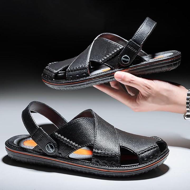 レザー調で大人な雰囲気を演出できるバックストラップサンダル。