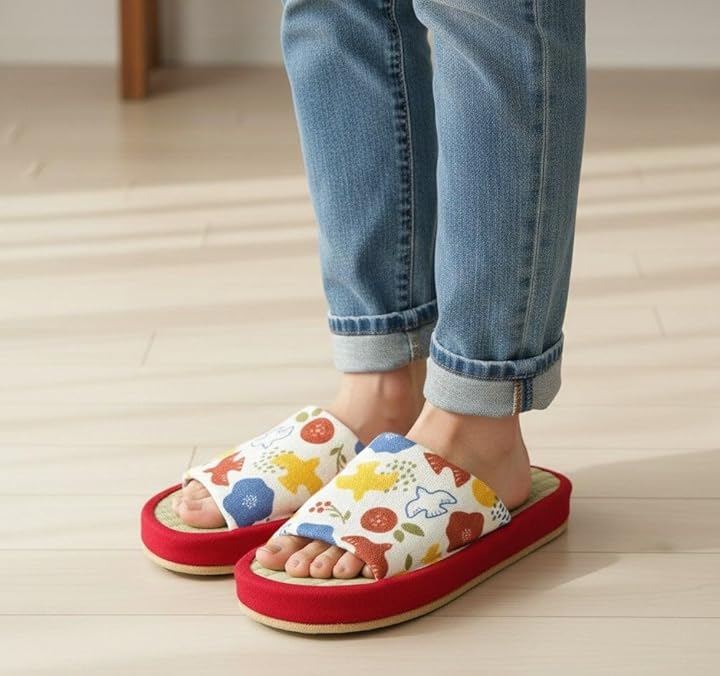 伝統的な和の畳に、大人かわいい北欧風のことり柄を掛け合わせた、お部屋をパッと彩る鮮やかな一足
