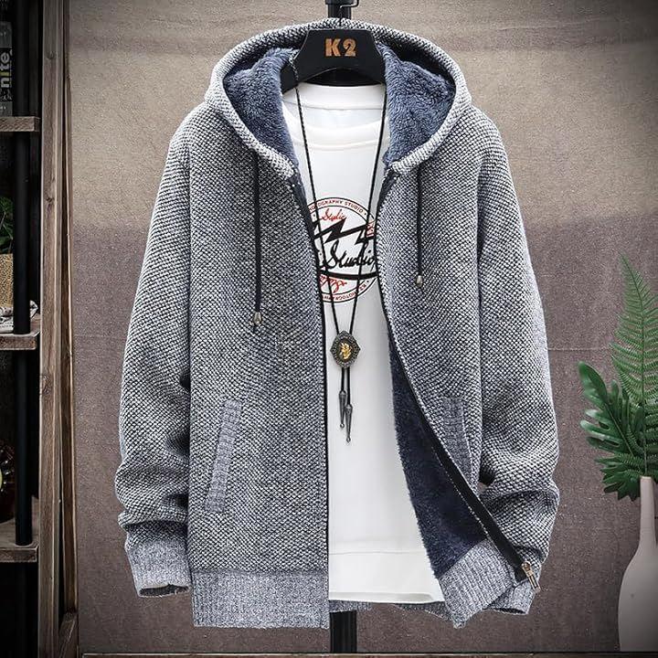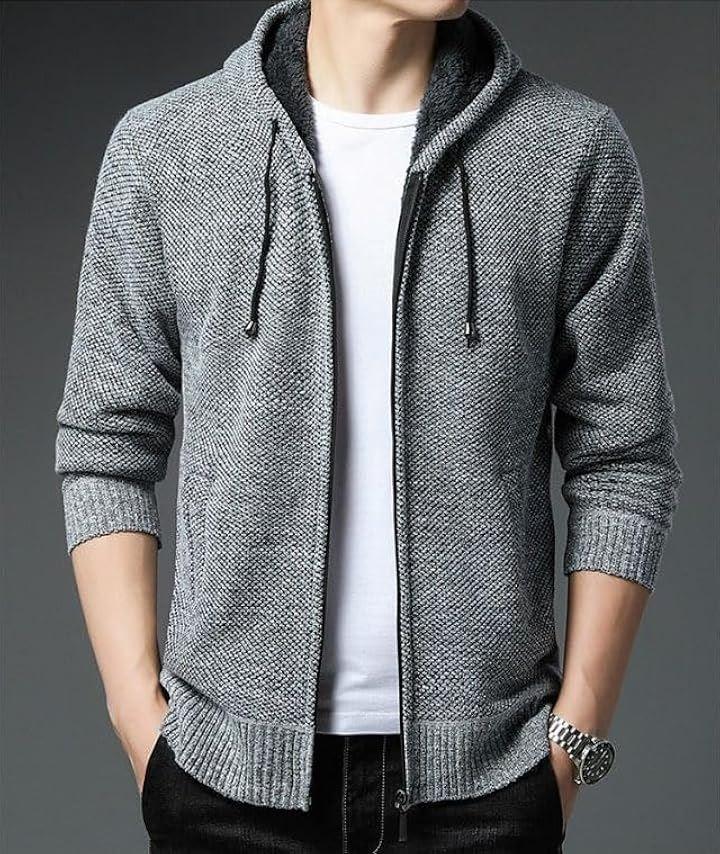 *カジュアルになりがちなフルジップパーカーも表面のニット素材と杢柄が大人な印象に