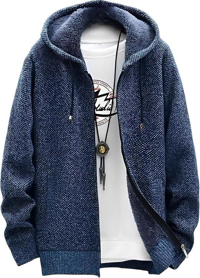 Emptio Men's Warm Hooded Outerwear, Stylish Fleece-Lined Blouson Jacket/Jumper, American Casual Cardigan, Long Sleeve, Military Style, Zipper Hoodie, Fashionable, Loose Fit, Blazer, Camping, Outdoors