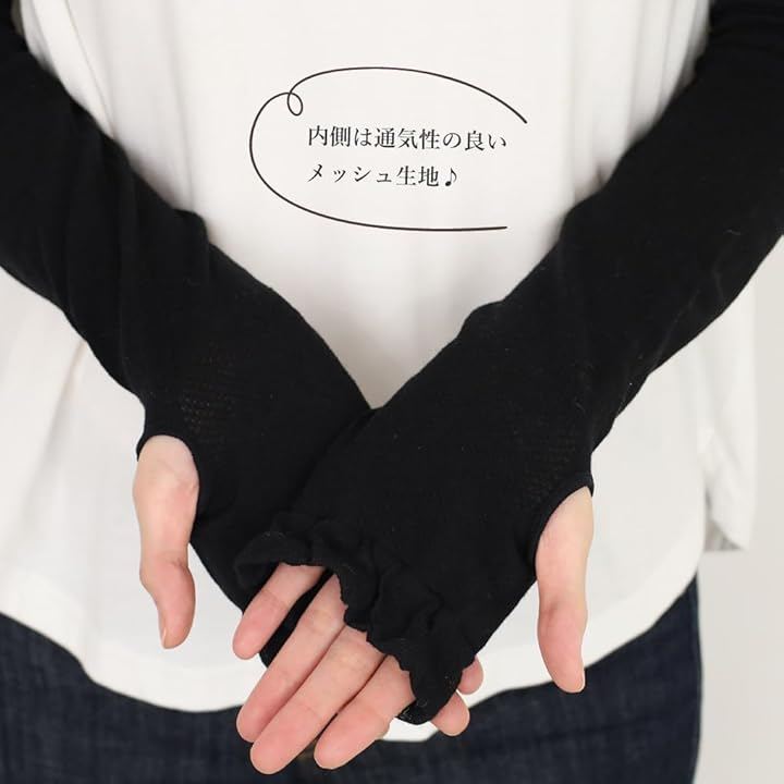 アームカバーの裏面はメッシュ編みで、通気性も抜群