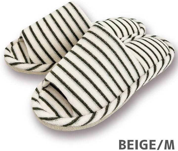 脱ぎ履きしやすいタイプで、ワイドな履き入れ口なので履きやすさが心地よいルームスリッパ。