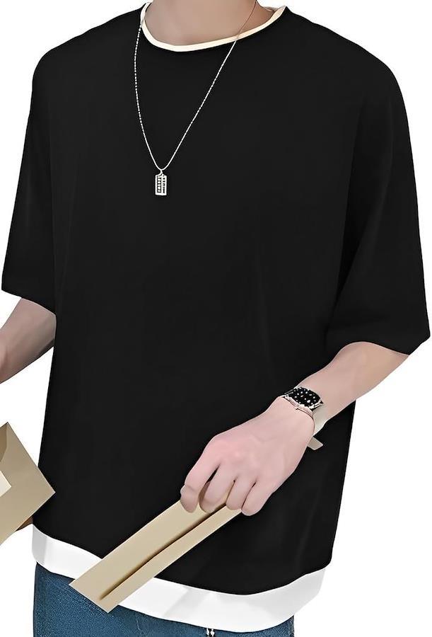 Emptio Plain Cut and Sew Big Silhouette T-Shirt Short Sleeve Men's Korean Crew Neck Sweatshirt Long T-Shirt Slim Large Size Sports Quick Drying