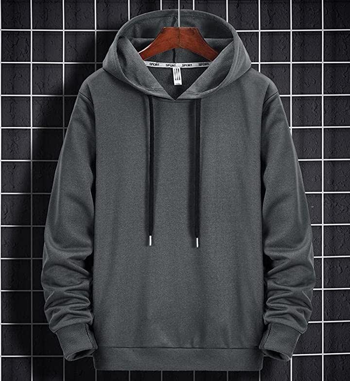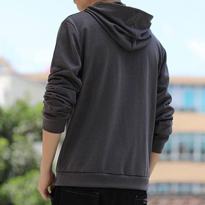Emptio Plain Slim Long Sleeve Hooded Hoodie Men's Street Style Gray