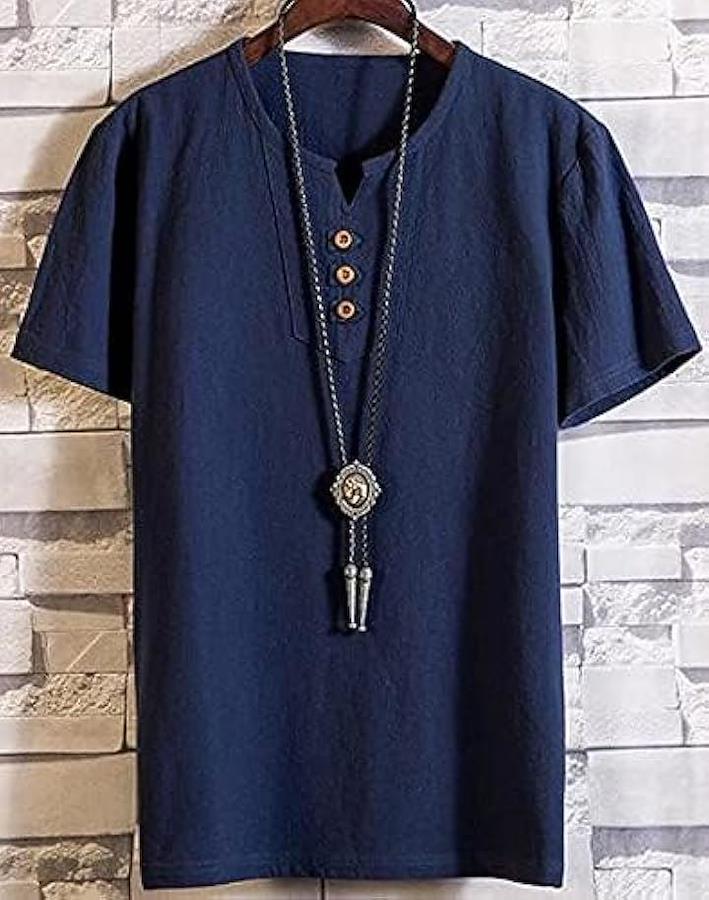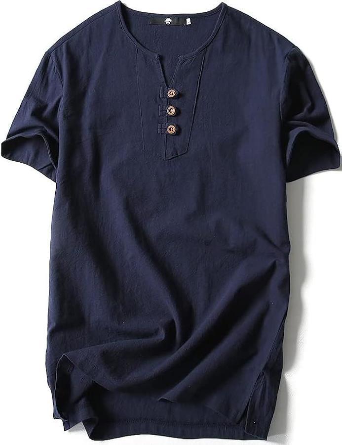 ヘンリーネックシャツはボタン仕様でラフな雰囲気を楽しめる一枚になっています。