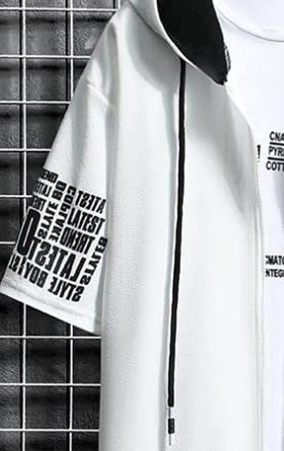 Emptio Short Sleeve Zip Up Hoodie Fashionable Street Outerwear Short Sleeve Parka White