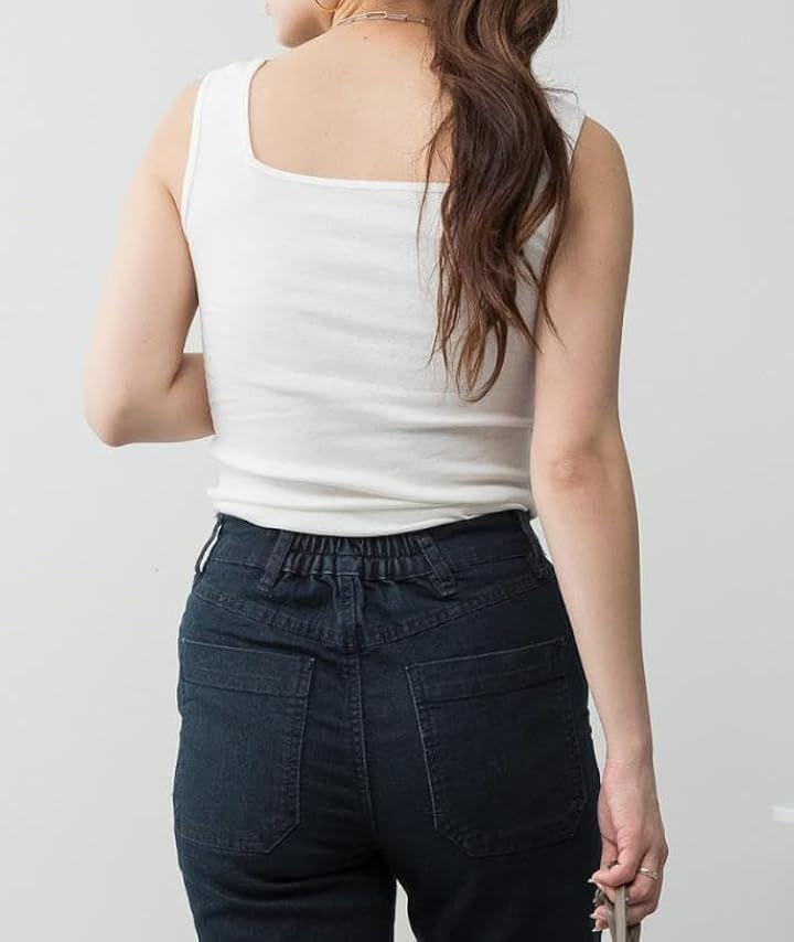 今年流行りのスクエアネックタンクトップが、カップ付きで登場しました。
