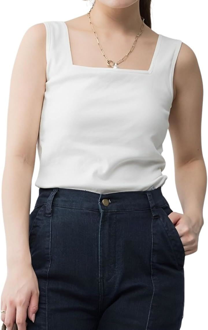 今年流行りのスクエアネックタンクトップが、カップ付きで登場しました。
