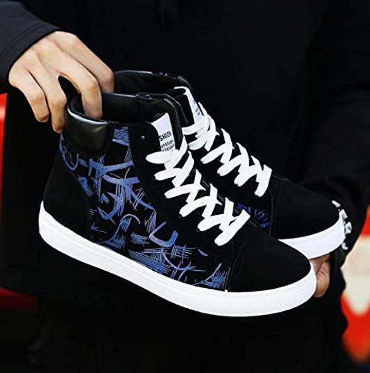 ・*切り替えの絵柄で変化をつけたアッパー部分には、カラフルなデザインがオシャレを演出* (デザインとロゴマークは変わる場合がございます)*足首までしっかりフィットするハイカットスニーカー*
