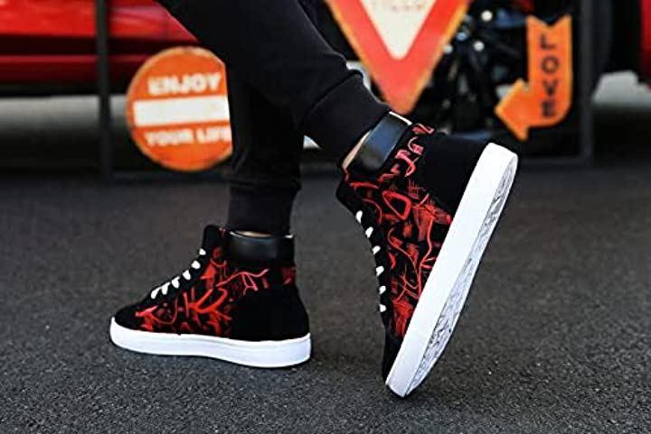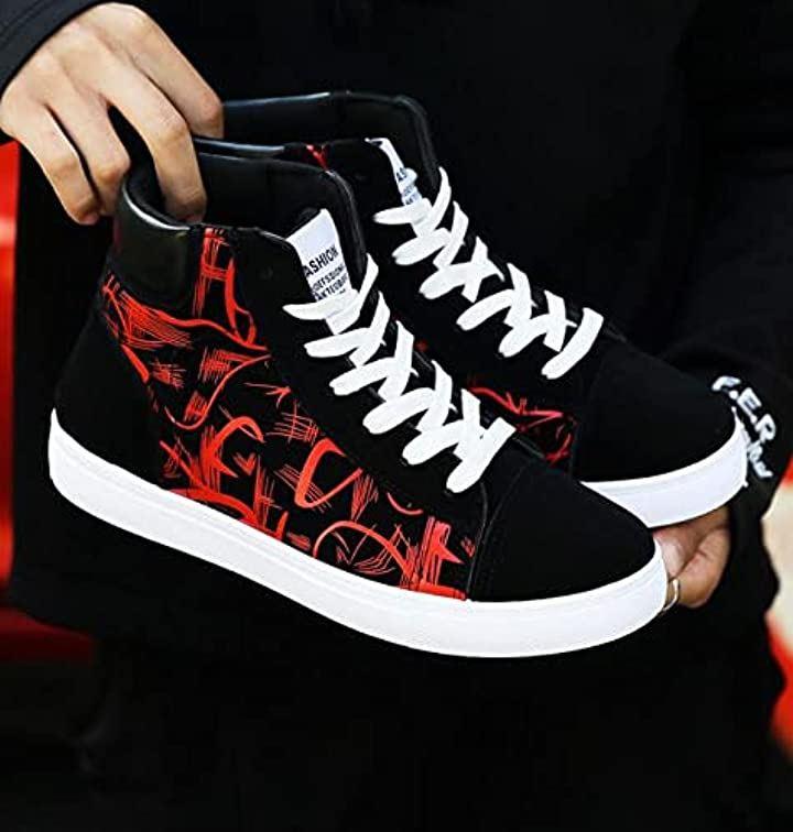 ・*切り替えの絵柄で変化をつけたアッパー部分には、カラフルなデザインがオシャレを演出* (デザインとロゴマークは変わる場合がございます)*足首までしっかりフィットするハイカットスニーカー*