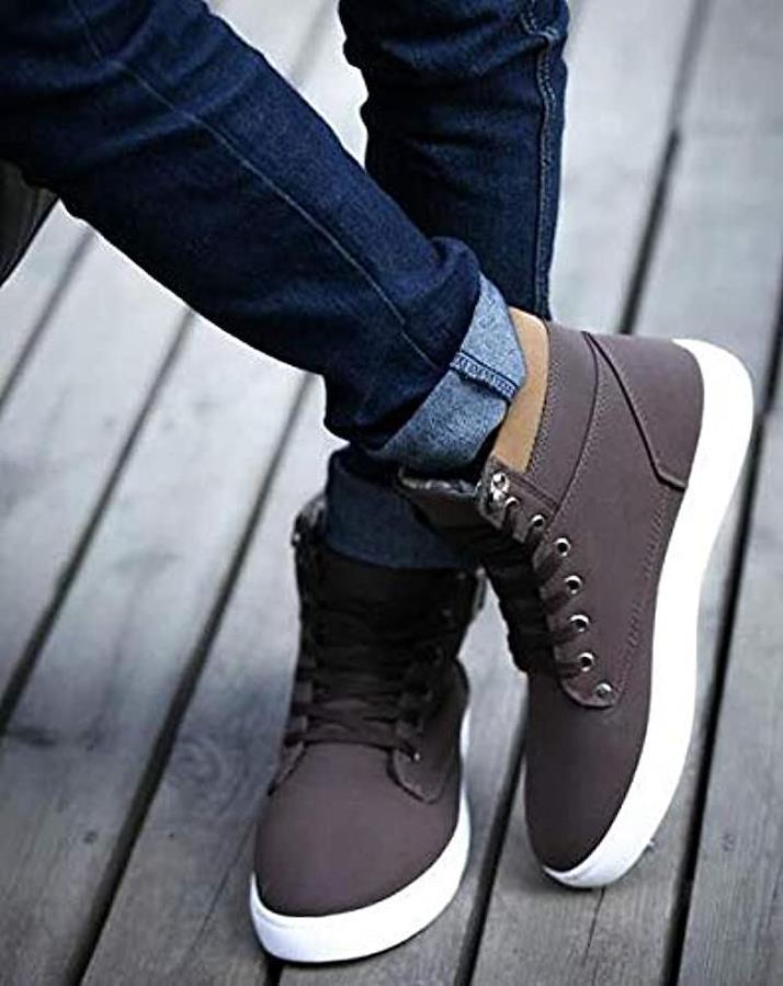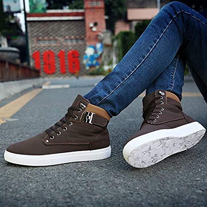 ・*しっかりとした生地の厚底タイプのスニーカー**衝撃を吸収してくれるPVCソールでクッション性に優れ、疲れにくく快適な履き心地のカジュアルシューズ**軽量で滑りにくいデザインで、ハイカットデザインながらも履き心地の良い一足です**タウンユースで気軽なスタイルを楽しんで*