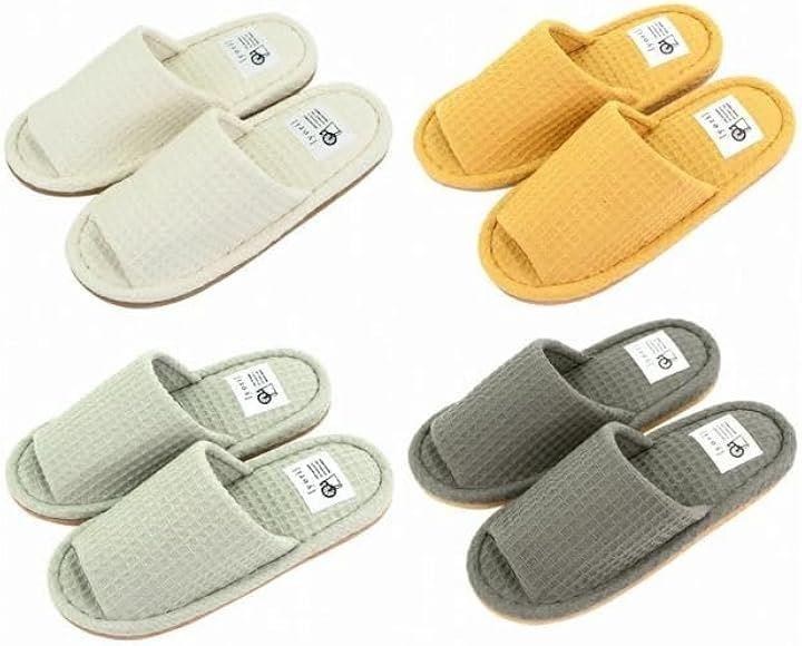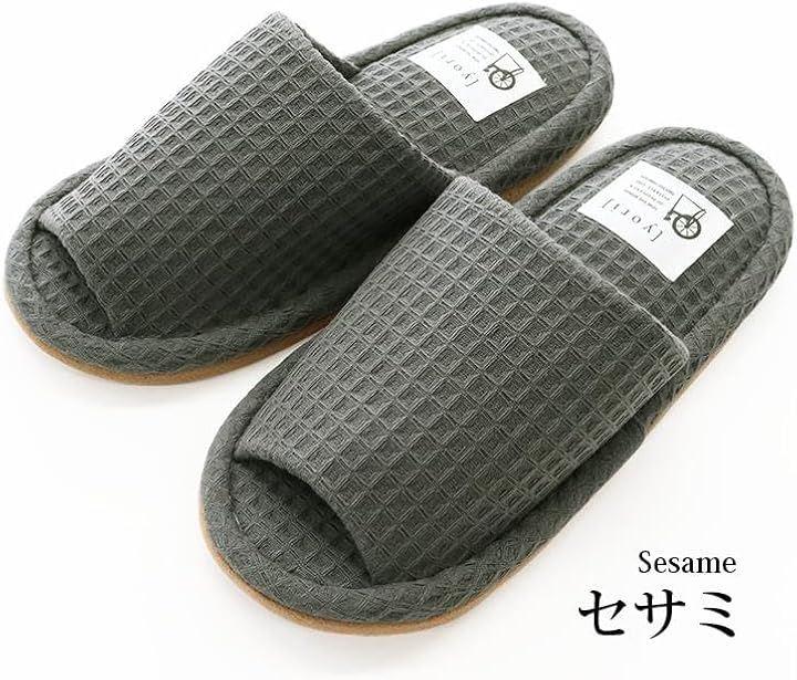 綿100%のコットンワッフル素材のスリッパは、中敷き甲裏もコットンなので、素足に履いて心地いいアイテム。