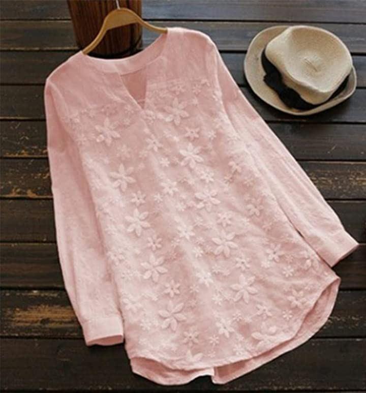 ・*首元がスッキリしたvネック仕様で、袖のメリハリあるシルエットが女性らしいポイントに**柔らかく春らしい色使いも相まって、顔周りを優しく華やかに見せてくれる1枚**花柄で甘くなりすぎずに着ていただけるアイテム*