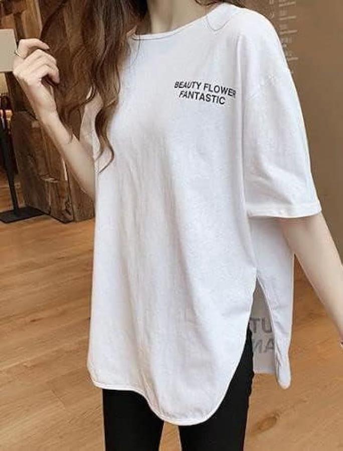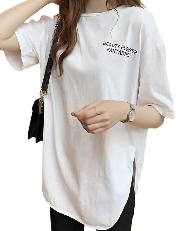 サイドにスリットが入ったヒップまで隠れるロング丈カットソーは、カジュアルにもキレイめにも。
