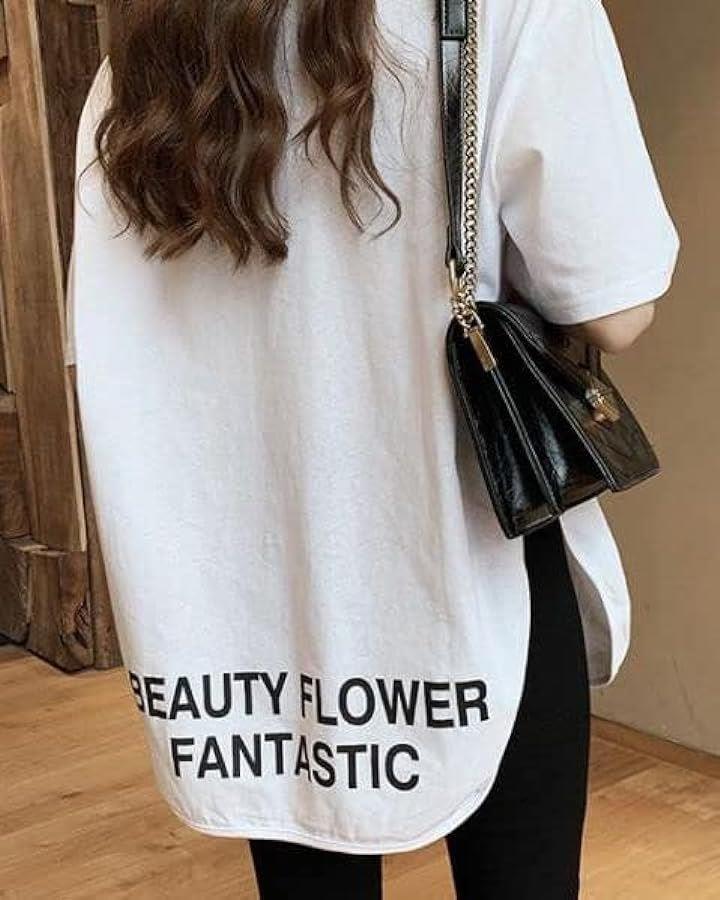 バックプリントが裾の部分にデザインされていて、様々なインナーと合わせて春はもちろん、夏や秋口まで使え、柔らかい生地が着心地抜群です。