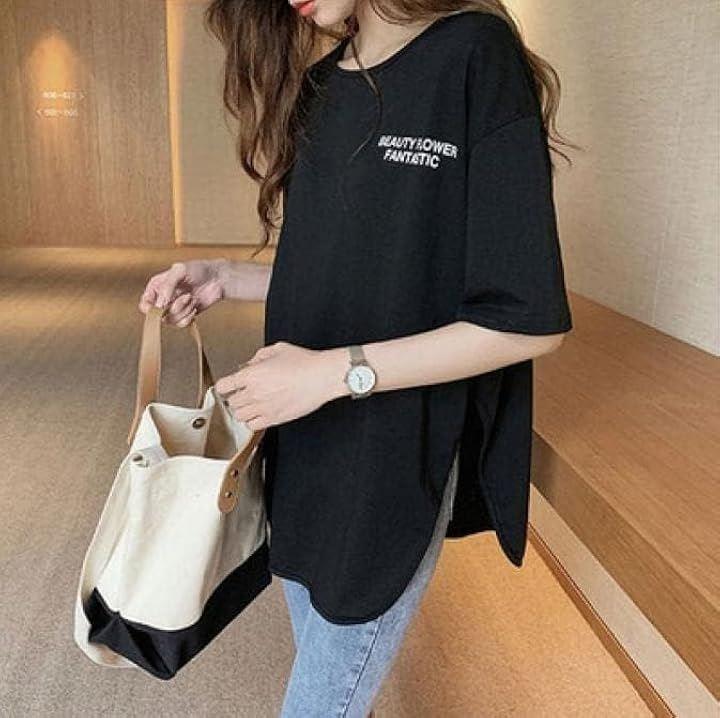 サイドにスリットが入ったヒップまで隠れるロング丈カットソーは、カジュアルにもキレイめにも。