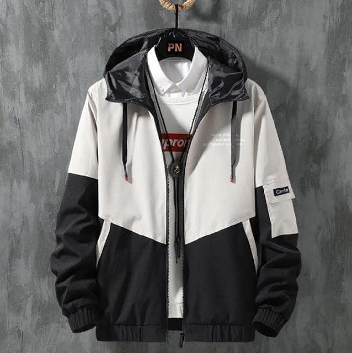 胸と肘部分を別色で切り替えたアウトドアデザインのフルジップパーカー。