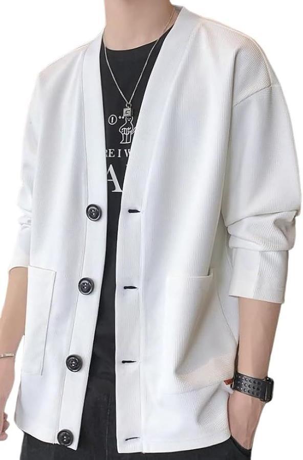 ・前ボタンしめた時の深めのVネックラインが顔まわりにシャープな雰囲気を演出し、季節の変わり目にも重宝してくれる1枚持っておきたいワードローブアイテム