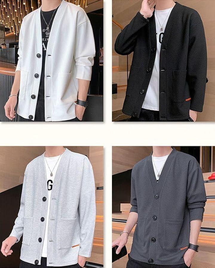 *前ボタンしめた時の深めのVネックラインが顔まわりにシャープな雰囲気を演出し、季節の変わり目にも重宝してくれる1枚持っておきたいワードローブアイテム。