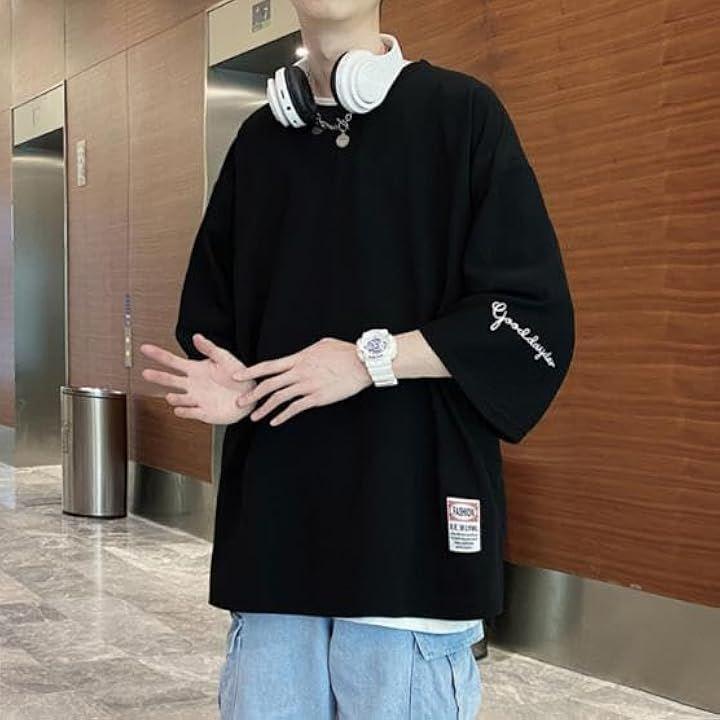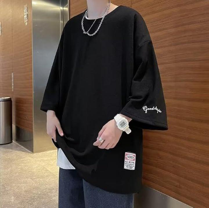 *ゆったりとしたシルエットで、幅の広い7分袖のクルーネックtシャツ