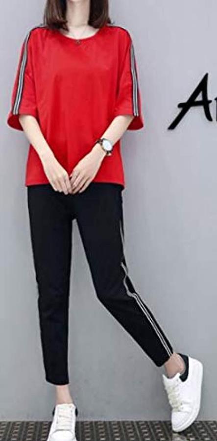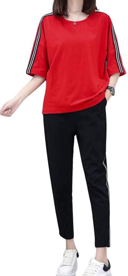 *トップスの肩口とパンツのサイドにトレンドのダブルラインが入ったスタンダードなアイテム*