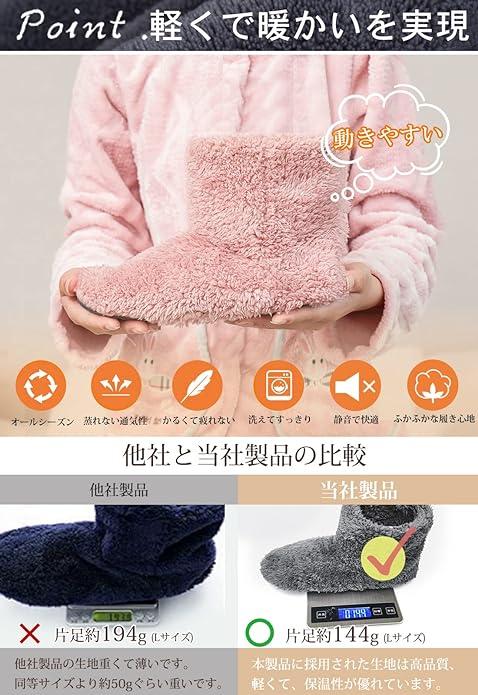 2023年改良版あったかスリッパ【スリッパ 冬用・ツふわふわ暖かい・やわらかで脱ぎ履きしやすく】改良1:ツふわふわ暖かい:包み込まれるようなフィット感と、とろける履き心地が魅力のルームシューズです。極細繊維の中にたくさんの空気を逃さず含まれるので、保温力が高くなっています。冷え性な方にオススメ!改良2:脱ぎ履きしやすい&広い間口で:日本人の足に多い甲高・幅広に合うようブーツの形状を改良致しました。足首の間口が広いので、ミドルカットのブ-ツでも着脱しやすく脱ぎ履きも楽ちん。起き抜けの朝も、スポッとワンタッチで装着できます。素足で履いても あたたかく、冷え性対策・防寒対策に。脱ぎ履きが簡単にできる形に作られているのもポイント。抗菌防臭・静電気防止加工済み。
