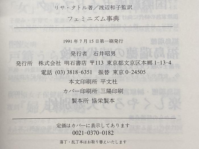 商品名:フェミニズム事典 明石書店 リサ タトル