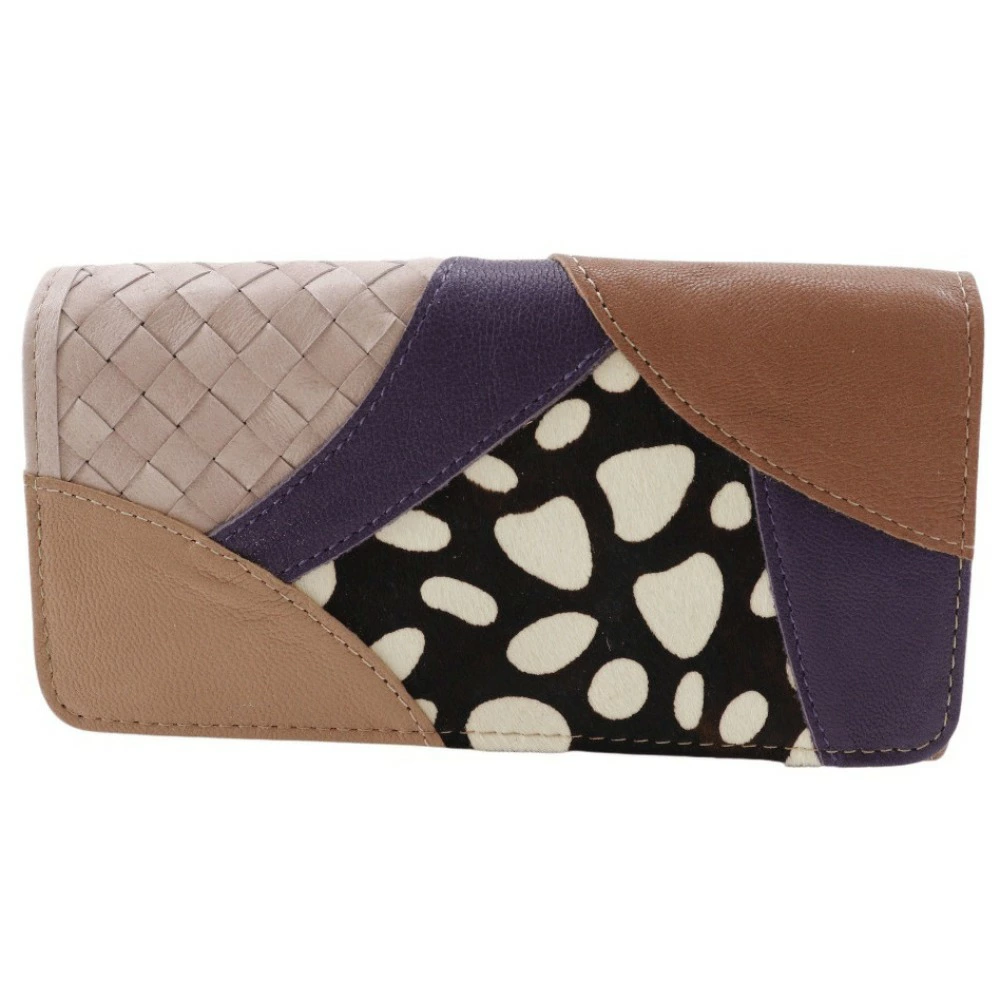 Endymion Spring Genuine Leather Patchwork Long Wallet, Pink, Snap Buttons, Women's, Pre-owned, A+ Rank