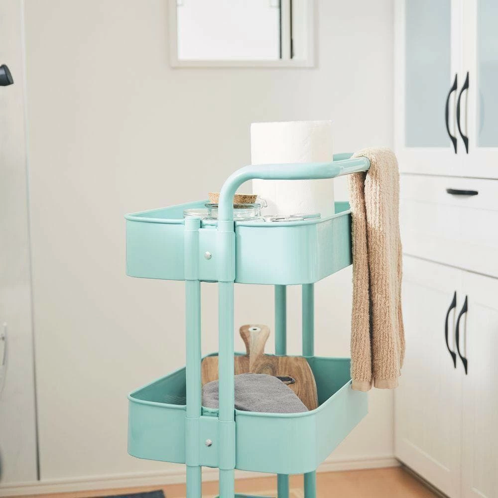 使いやすさと収納力を兼ね備えた、便利なハンドル付きの3段ワゴンです。