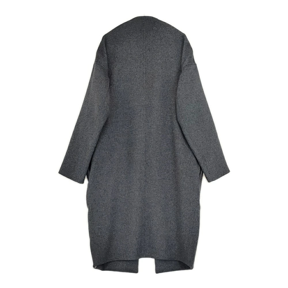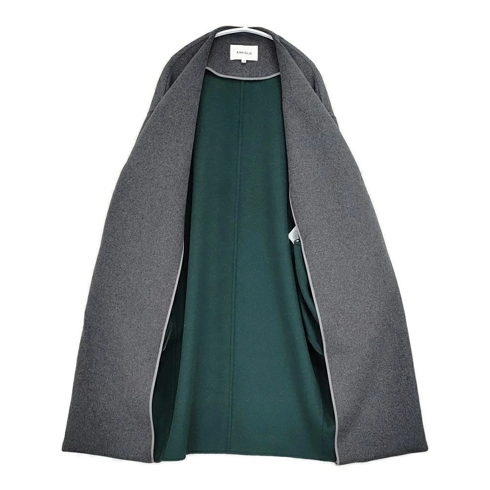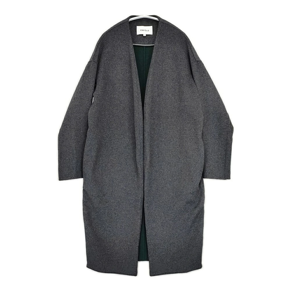 ENFOLD 3009A130-1000 River Wool Collarless Long Coat, Size 36, Charcoal Gray, Women's, Enfold [Pre-owned] 5-1219A