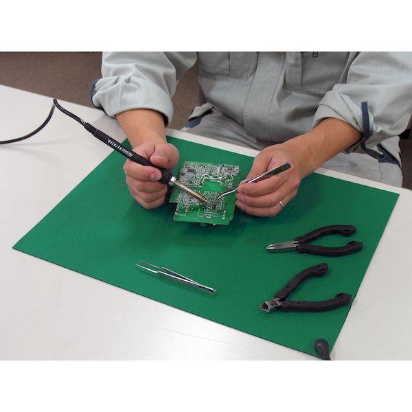 ●コードをアースに接続すれば、マットに接触させるだけで人体や工具、電子部品に溜まった静電気を除去します。