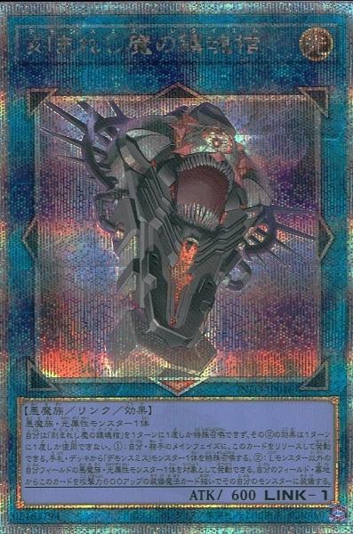 ■搭載パック:[INFO]INFINITEFORBIDDEN■収録:基本パック■■レアリティ:QCシークレット■種類:リンクモンスター■属性:光■種族:悪魔族■星(レベル、ランク):‐■攻撃力:600■守備力:‐■リンク:1■リンク方向:下■ペンデュラムレフト:‐■ペンデュラムライト:‐■■シリーズ:第12期■効果テキスト:悪魔族・光属性モンスター1体自分は「刻まれし魔の鎮魂棺」を1ターンに1度しか特殊召喚できず、その②の効果は1ターンに1度しか使用できない。①:自分・相手のメインフェイズに、このカードをリリースして発動できる。手札・デッキから「デモンスミス」モンスター1体を特殊召喚する。②:Lモンスター以外の自分フィールドの悪魔族・光属性モンスター1体を対象として発動できる。自分のフィールド・墓地からこのカードを攻撃力600アップの装備魔法カード扱いで自分のモンスターに装備する。■ペンデュラムテキスト:‐