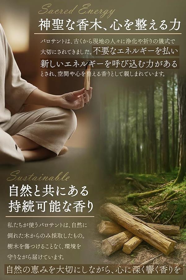 「パロサントのみを使用」本商品はパロサントのみを使用したお香。